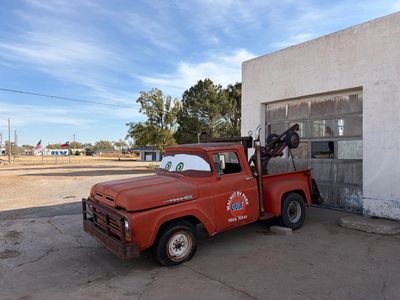 One of our favorite features is our 1960 Ford F-100 tow truck, affectionately known as R.V. Parker III. Donated by a generous local family who wishes to remain anonymous, this cheerful truck — complete with big painted eyes and a grin — has become our park mascot and a must-see photo stop for travelers. He may remind you of a certain movie tow truck, but R.V. Parker III has his own one-of-a-kind Route 66 personality!